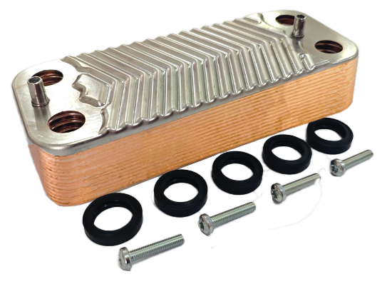 Echangeur de chaleur à plaques adaptable de type SAUNIER DUVAL 16 Plaques pour chaudière domestique.
