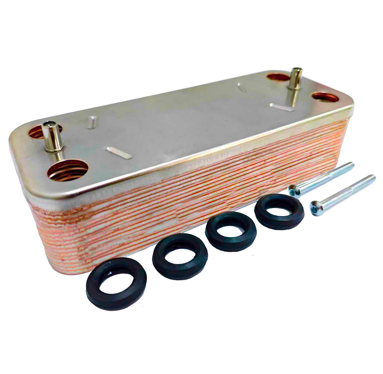 Echangeur de chaleur  à plaques adaptable de type ELM LEBLANC 18 Plaques pour chaudière domestique.